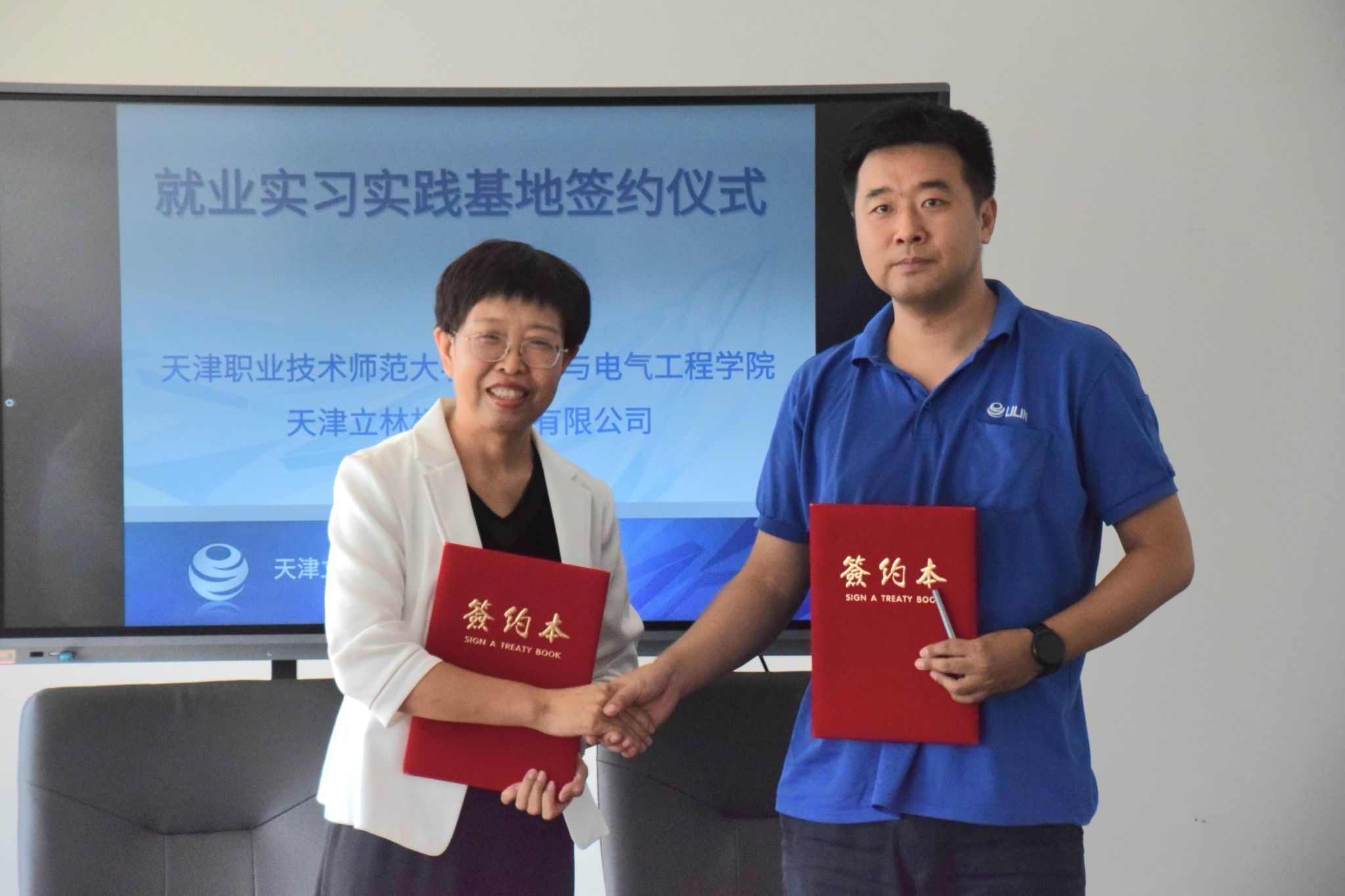 正在预会职员睹证停,两边举办签约受牌典礼。王冬霞取弛伯弢代替两边配合签订校企互助订定,李靖代替黉舍背企业赋予“天津工作技能师范年夜教便业试验理论基天”牌匾。