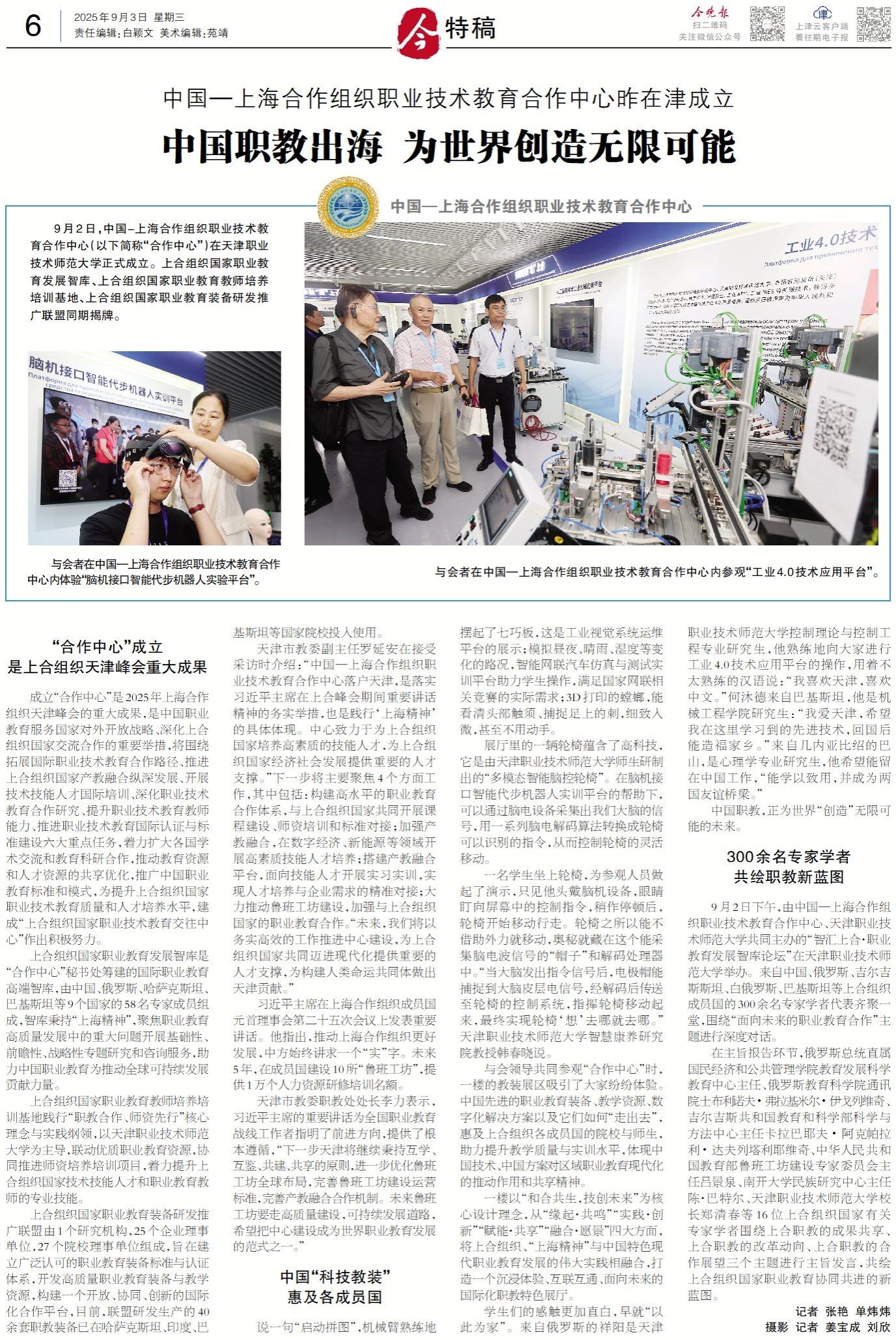 今晚报:中国—上海合作组织职业技术教育合作中心昨在津成立 中国职教出海 为世界创造无限可能